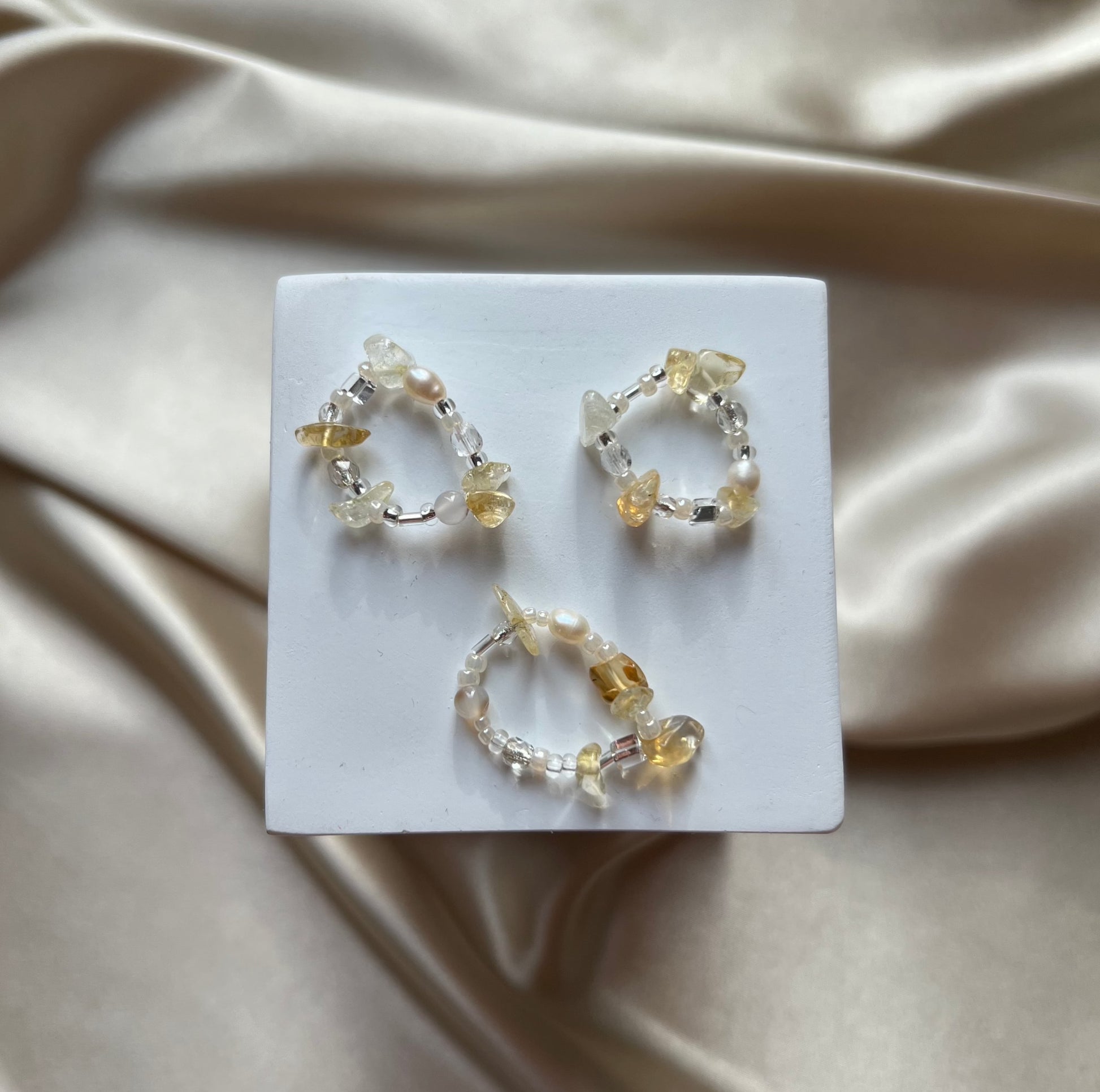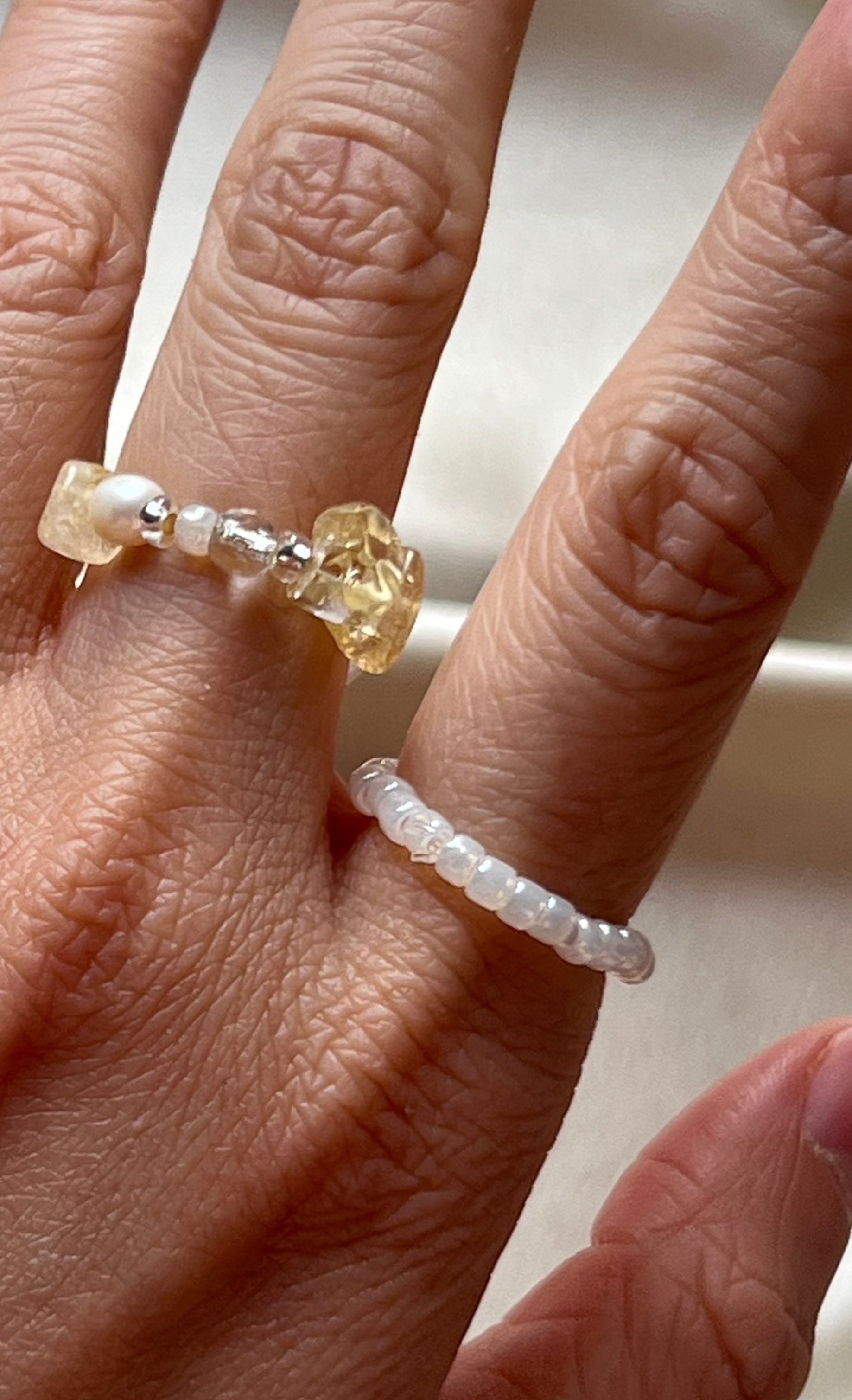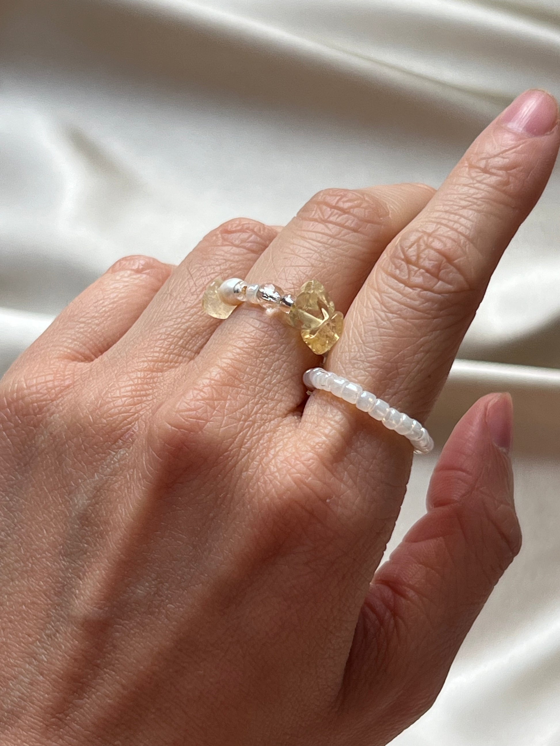 Capture the essence of summer with the Sorrento Ring. Crafted with a delicate blend of citrine, freshwater pearls and glass beads. A playful and unique accessory that evokes nostalgic memories of summer days spent at the beach. Its subtle hues of golden sunrays, reminiscent a serene sunset, reminding you of lazy days spent by the beach. An ideal accessory for those seeking an air of summer elegance all year long.