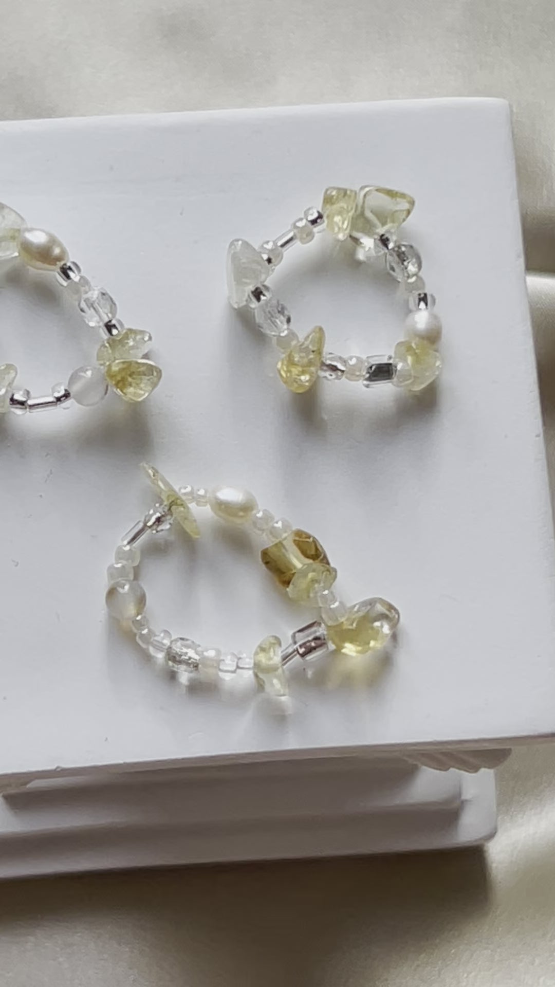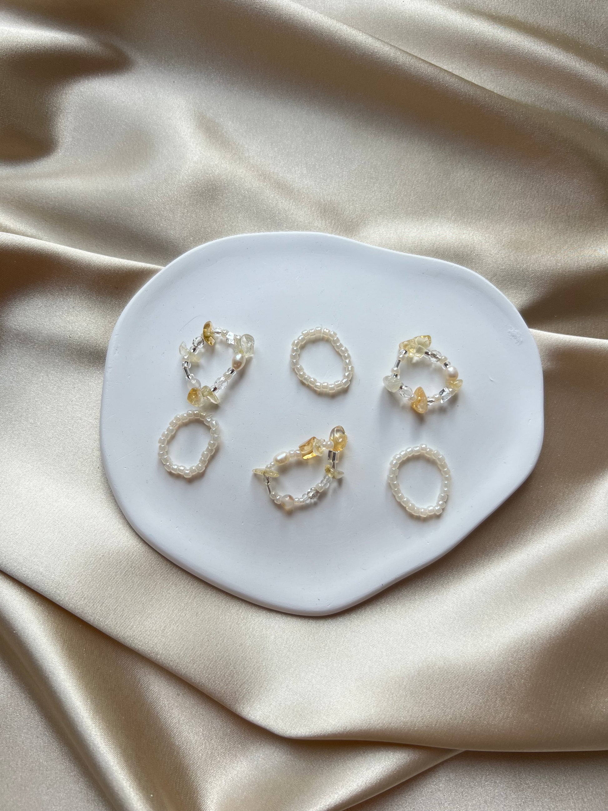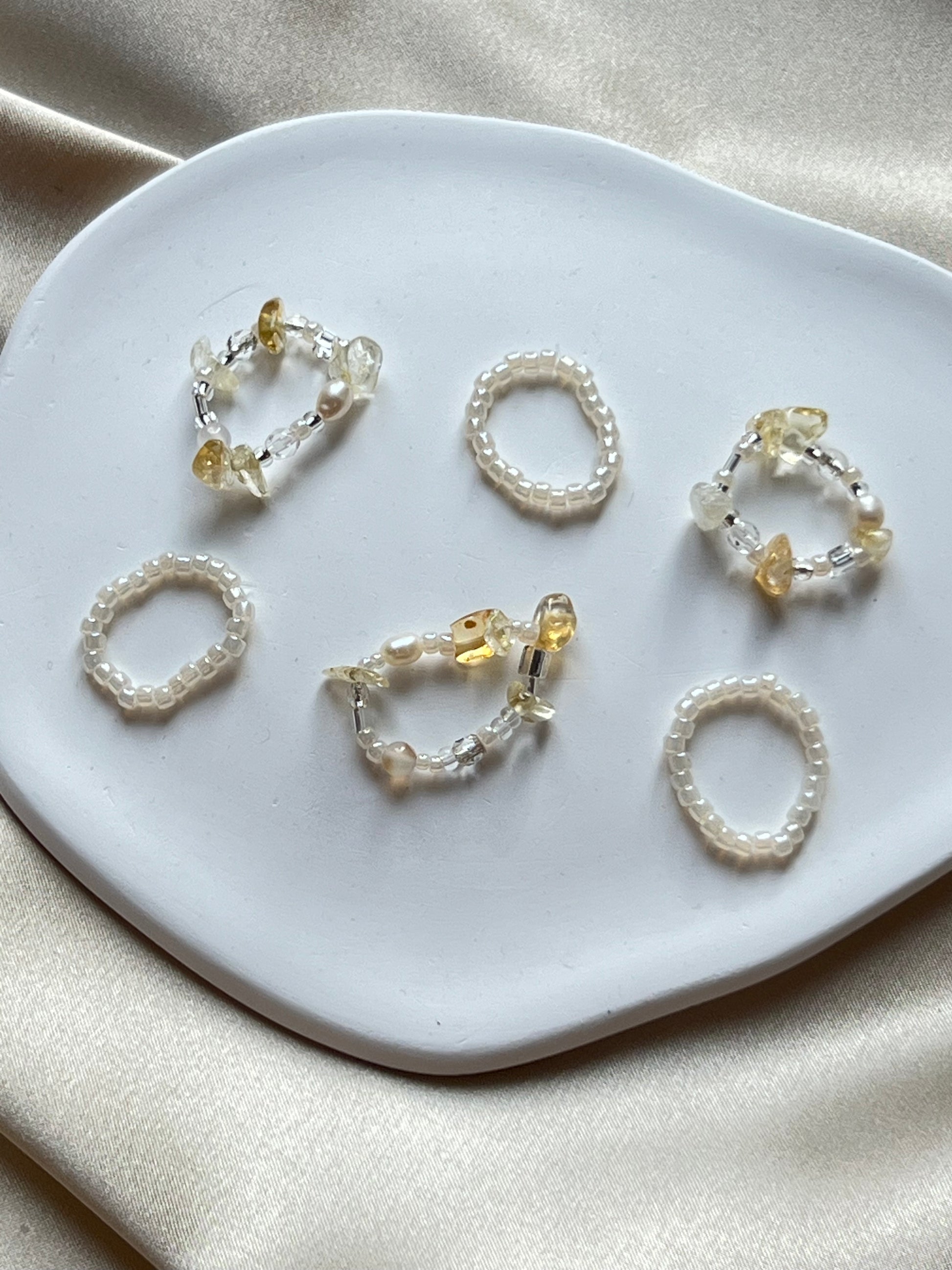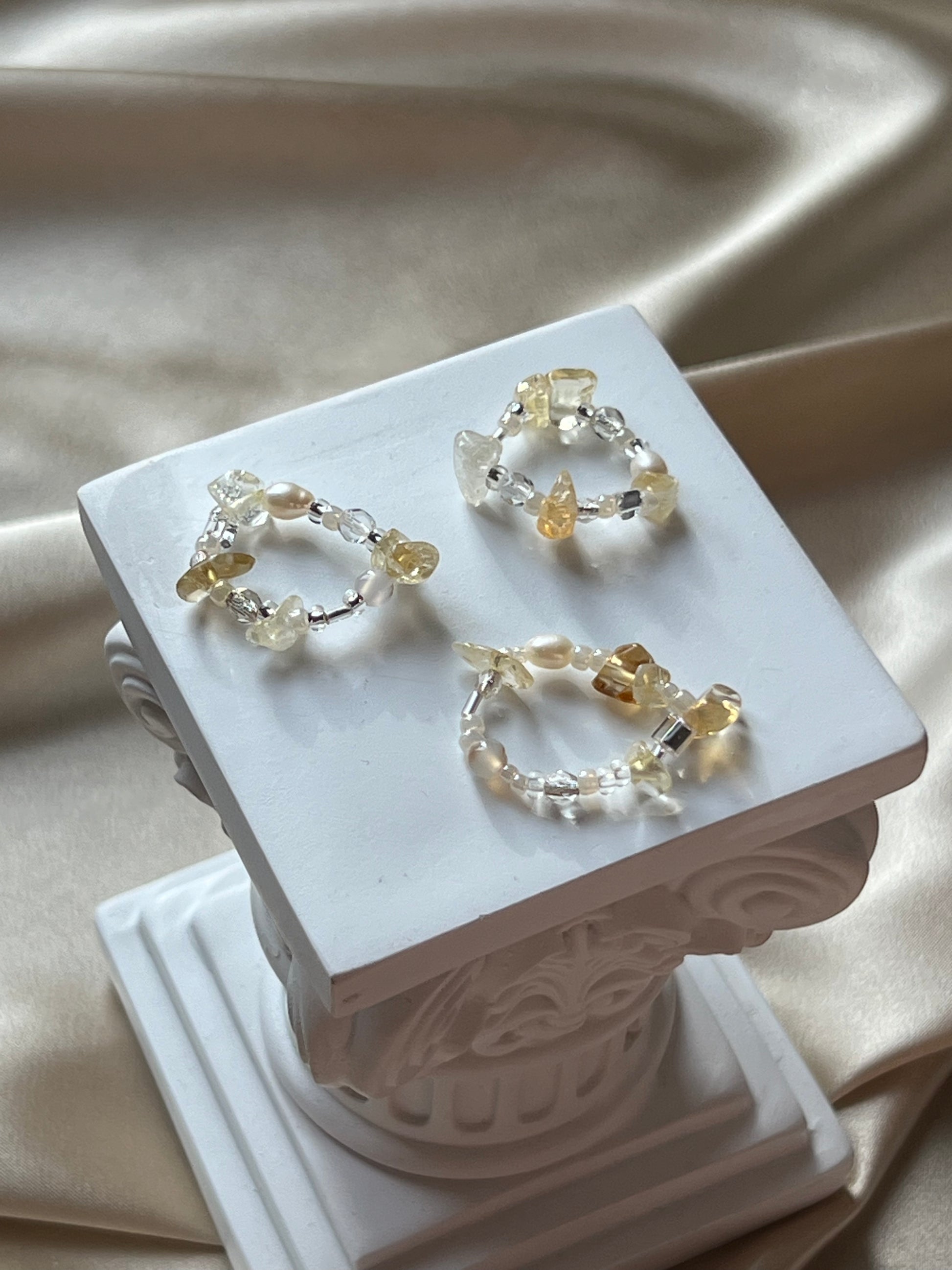 Capture the essence of summer with the Sorrento Ring. Crafted with a delicate blend of citrine, freshwater pearls and glass beads. A playful and unique accessory that evokes nostalgic memories of summer days spent at the beach. Its subtle hues of golden sunrays, reminiscent a serene sunset, reminding you of lazy days spent by the beach. An ideal accessory for those seeking an air of summer elegance all year long.